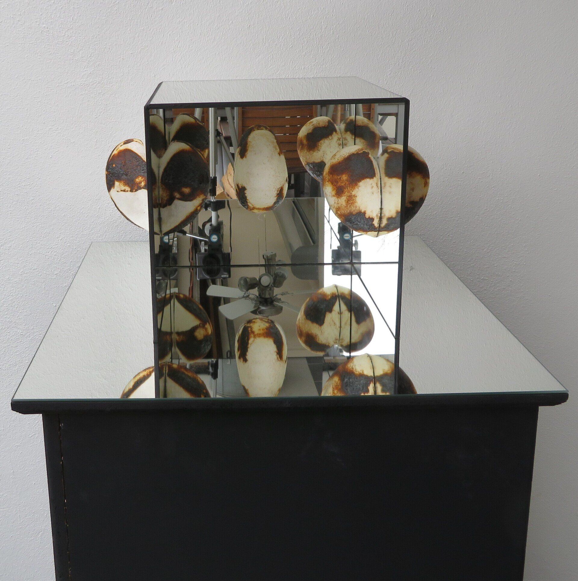 Im inneren des Kastens vervielfältigt sich das Spiegelbild bis in die Unendlichkeit.